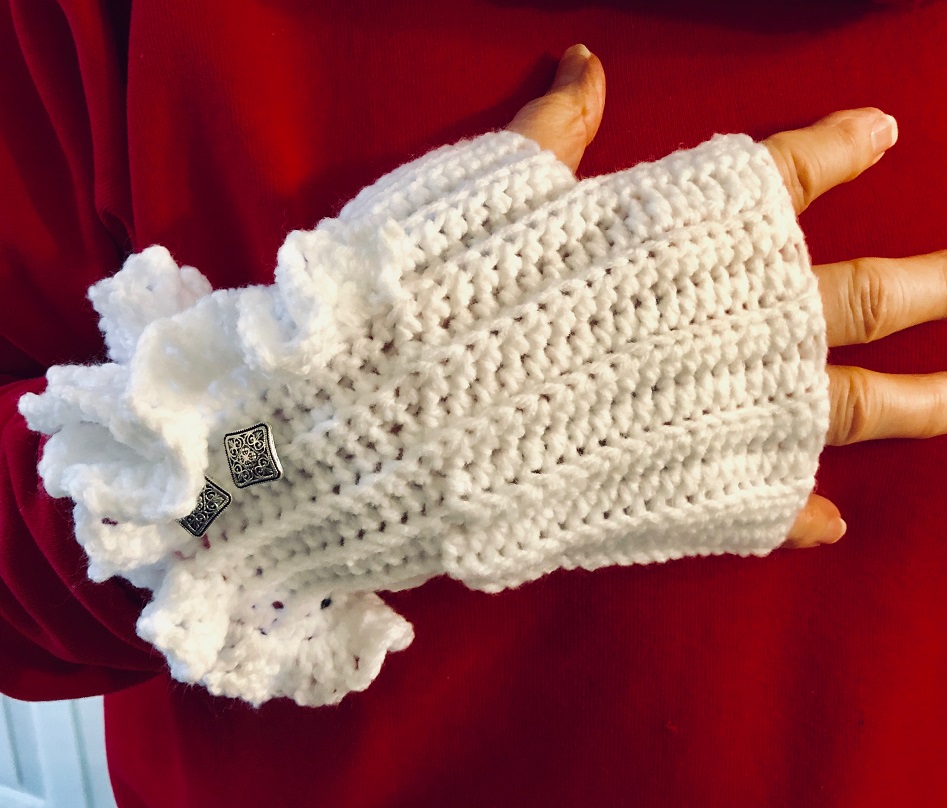 These gloves were made with scrap yarn, so I am working on the real thing now, with real yarn purchased for the specific purpose of creating a pair of PERFECT fingerless glove. Well, as near perfect as I can make them.