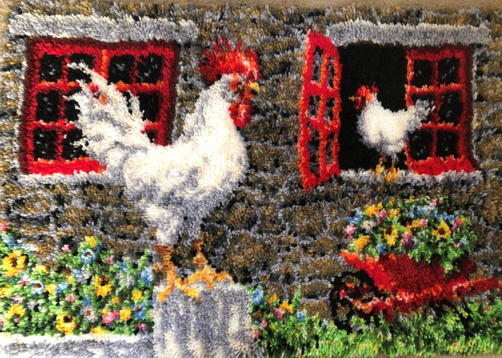 For example, I finished a chicken latch-hook rug mostly because I wanted to learn the technique. What I really intend to do is to create a rag rug using old clothing. Just cut the fabric into strips to use instead of using tiny pieces of yarn. The chicken rug was fun to make and I believe the rag rug will be even more so because it will be part of my creative energy. I have not finalized the design for the rag rug, but I will very soon.